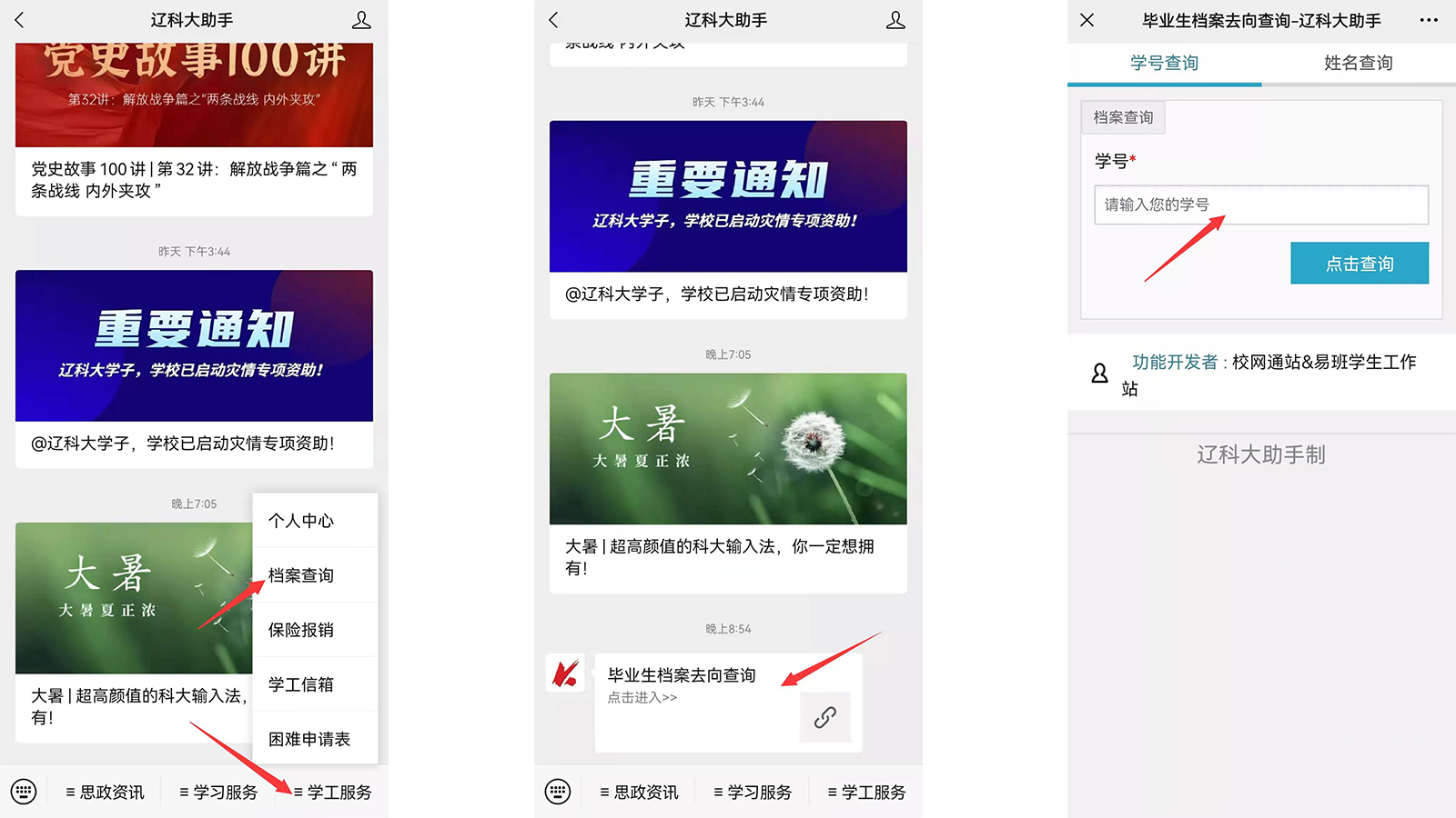 关于“辽科大助手”微信公众号开通档案查询等“一站式”服务的通知