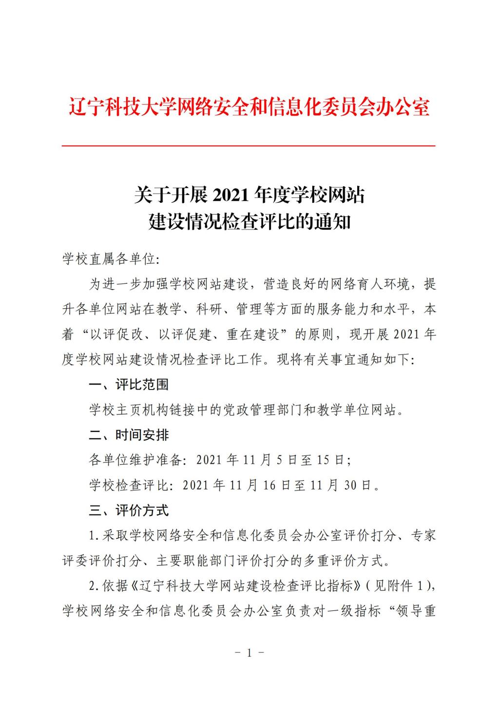 关于开展2021年度学校网站建设情况检查评比的通知