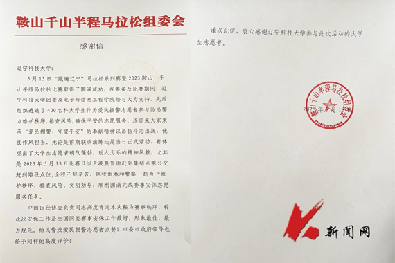 辽科大收到鞍山千山半程马拉松组委会感谢信